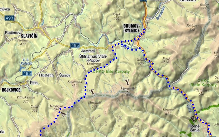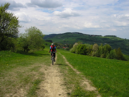 Po čtvrtečním úspěšném absolvování memoriálu L. Č. na Kohůtku jsme si naplánovali tento týden ještě jeden výjezd na kole a to na neděli 11. 5. - "cestu hrdinou SNP". Ptáte se proč zrovna cesta Hrdinou SNP, no to proto, že část hřebenovky, kterou během táto tůry jedeme je právě takto na mapách označována. V 10:00 hod vyrážíme se Slávkem z Brumova, ve Štítné se k nám připojuje Petr (čpbbt), jsme tedy komplet a může se jet. Ze Štítné jedeme směrem k přehradě, asi půl km za přehradou odbočujeme vpravo a kolem Kochaveckého potoku jedeme přes Kochavec až na hřeben na státní hranici. Dál vede naše trasa přes Žítkovů k motorestu Rasová. Je poledne, takže si dáváme něco malého na zub. Ač se nám po obědě moc nechce, jedeme dál a to přes Mikulčín vrch, Vyškovec, Kykulu a Machnáč, je to parádní, lehce zvlněná hřebenovka (teda až z Vyškovca).