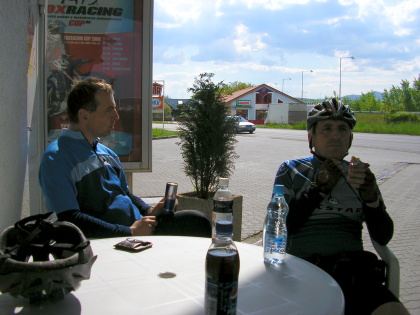 V Trenčíně najíždíme na stezku, která vede po hrázi, dál jedeme ještě po kamenitých cestách kolem Váhu a asi tak 2 km před Skalkou najíždíme na hlavní silnici. Teď už to je jenom takové polykání kilometrů, takže ani nikde nezastavujeme a jedeme bez zastávky přes Nemšovou a Vlárský průsmyk. V Bylnici u Hájenky odbočujeme k potoku a kolem Vláry jedeme po polňačkách až do Štítné. Tady konečně stavíme na zasloužené občerstvení. Dáváme si jedno, dvě a jedeme domů.