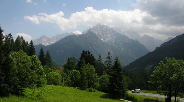 Julské Alpy leží převážně na území Slovinska a Triglav ( 2864 m) je právě nejvyšší horou této země, no a tam jsme si také tuto cestu naplánovali. Plán byl jasný vystoupit na Triglav popřípadě ještě na nějaký další kopec. Na výpravu odjíždíme ve složení : Petr (čpbbt), Mira a já (Josef). Ve čtvrtek 21. června v 7:00 hod ke mě přijíždí Petr, nakládáme moje věci a zjišťujeme, že se nám nějak podezřele plní naše expediční vozidlo a to ještě jedeme k Mirkovi..V půl osmé máme naloženo a vyrážíme přes Slovensko a Rakousko do Slovinska. Ve 14:00 zastavujeme a kocháme se prvními výhledy na Julské Alpy.