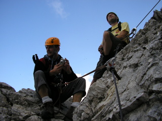 tady na sebe navlékáme s menšími obtížemi úvazky a ferratové sety